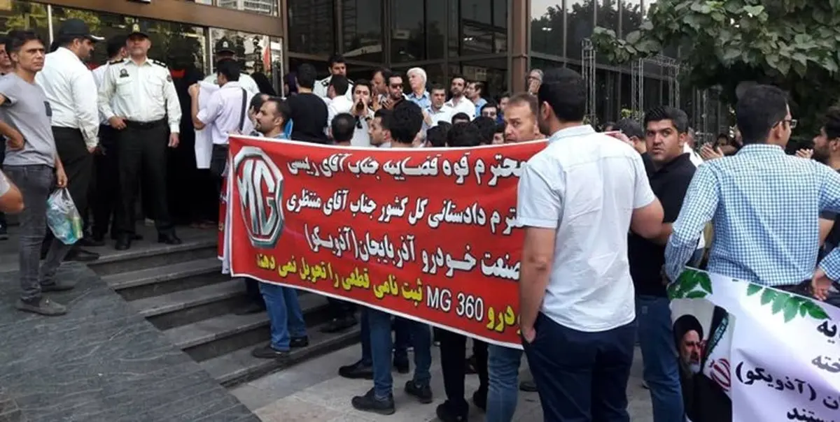 تجمع اعتراضی مقابل وزارت صنعت / خریداران ام جی گلایه داشتند+ عکس