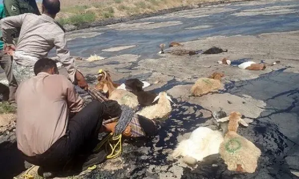 سقوط چوپان و ۱۵ راس گوسفند به حوضچه قیر