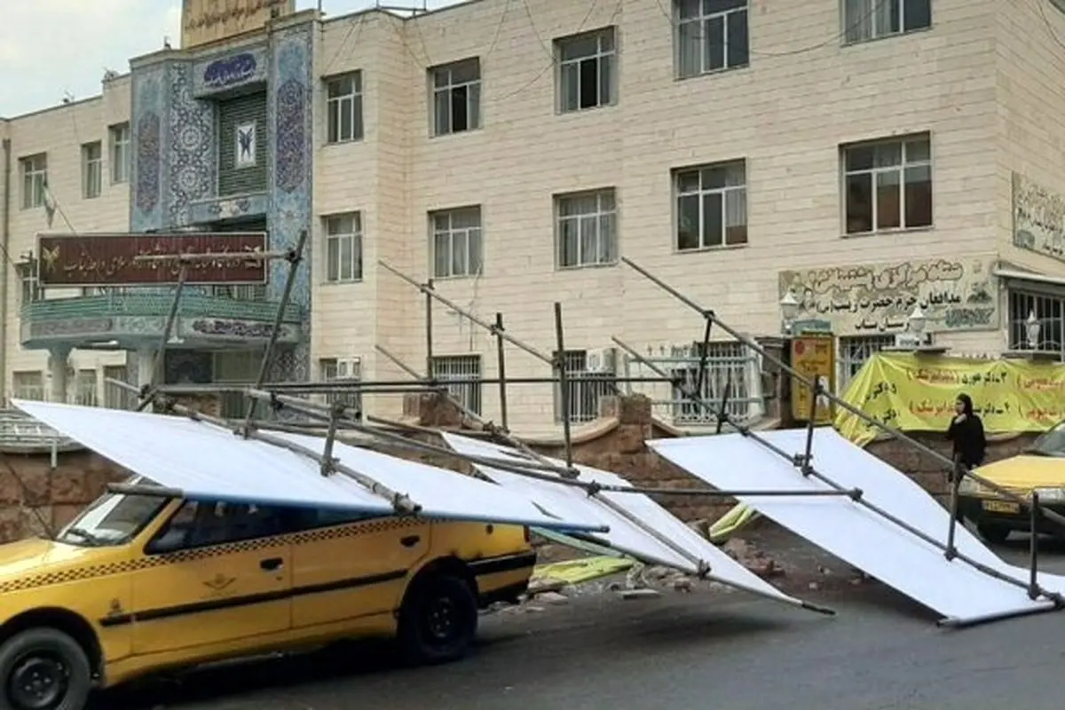 واژگونی داربست بنرهای نصب شده در این قسمت نیز موجب وارد شدن خسارت هایی بر تاکسی های شهری شد.