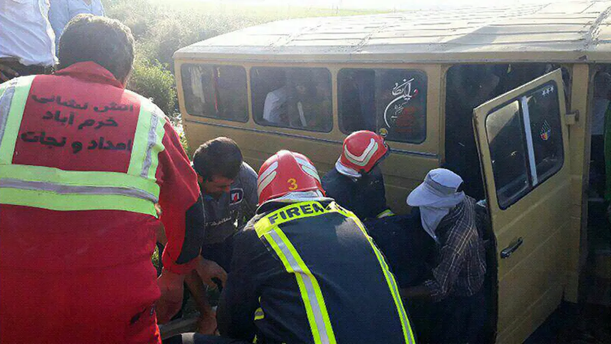 5 مصدوم در تصادف یک دستگاه مینی بوس با پژو در محور خرم آباد