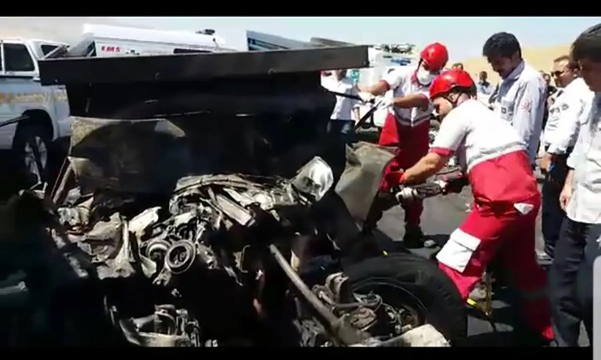 حوادث رکنا : برخورد نیسان با کامیون ده چرخ ، سوختن و مرگ راننده نیسان را در بر داشت.