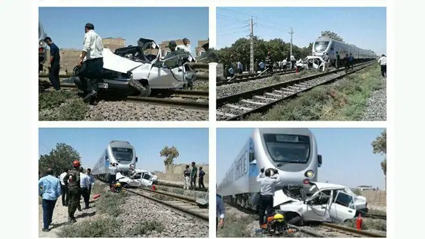 قطار مسافربری پراید را مچاله کرد / ظهر امروز در ورامین رخ داد + فیلم و عکس
