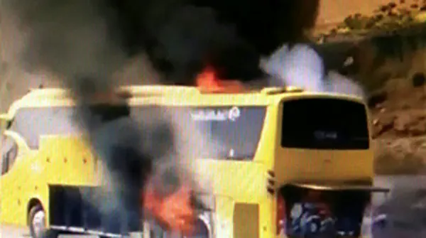 خاکستر شدن اتوبوس در محور سعادت شهر به مرودشت