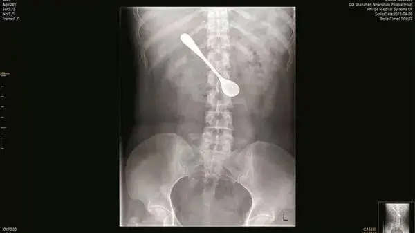 زن جوان که لی لی نام دارد پس از مدتی که درد در ناحیه معده اش شروع شد تصمیم گرفت تا با مراجعه به پزشک علت آن را جویا شود که پزشکان با آندوسکوپی و معاینات متوجه قاشق 13 سانتی داخل معده زن جوان شدند.