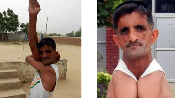 حوادث رکنا: Rammehar Punia دارای بدنی بسیار انعطاف پذیر است. وی 35 سال سن دارد وقادر به شکستن سی دی با فشردن سینه و شانه های خود است.
