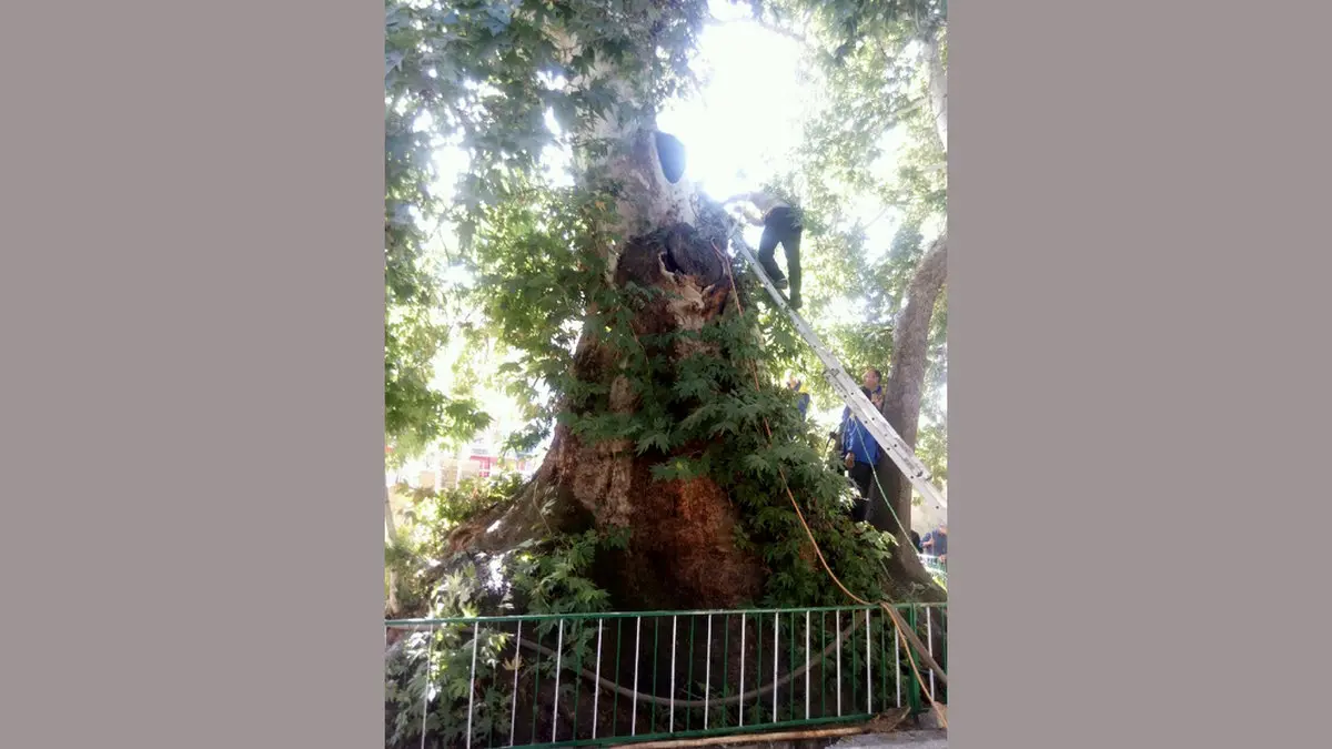 حوادث رکنا : یک درخت چنار با قدمت بیش از 2500 سال در مسجد باغوار در شهرستان تویسرکان آتش گرفت.