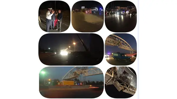 پل عابر اتوبان کرج-قزوین توسط کامیونی نصف شد ! + عکس ها