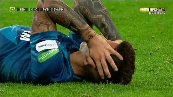 سباستین دریوسی، مهاجم آرژانتینی زنیت در نیمه نخست بازی با روبینکازان مصدوم و مجبور به ترک زمین شد. بررسیهای اولیه پزشکان حاکی از ضربه مغزی این بازیکن بود که سرمربی زنیت را وادار به تعویض اجباری سباستین دریوسی کرد.
