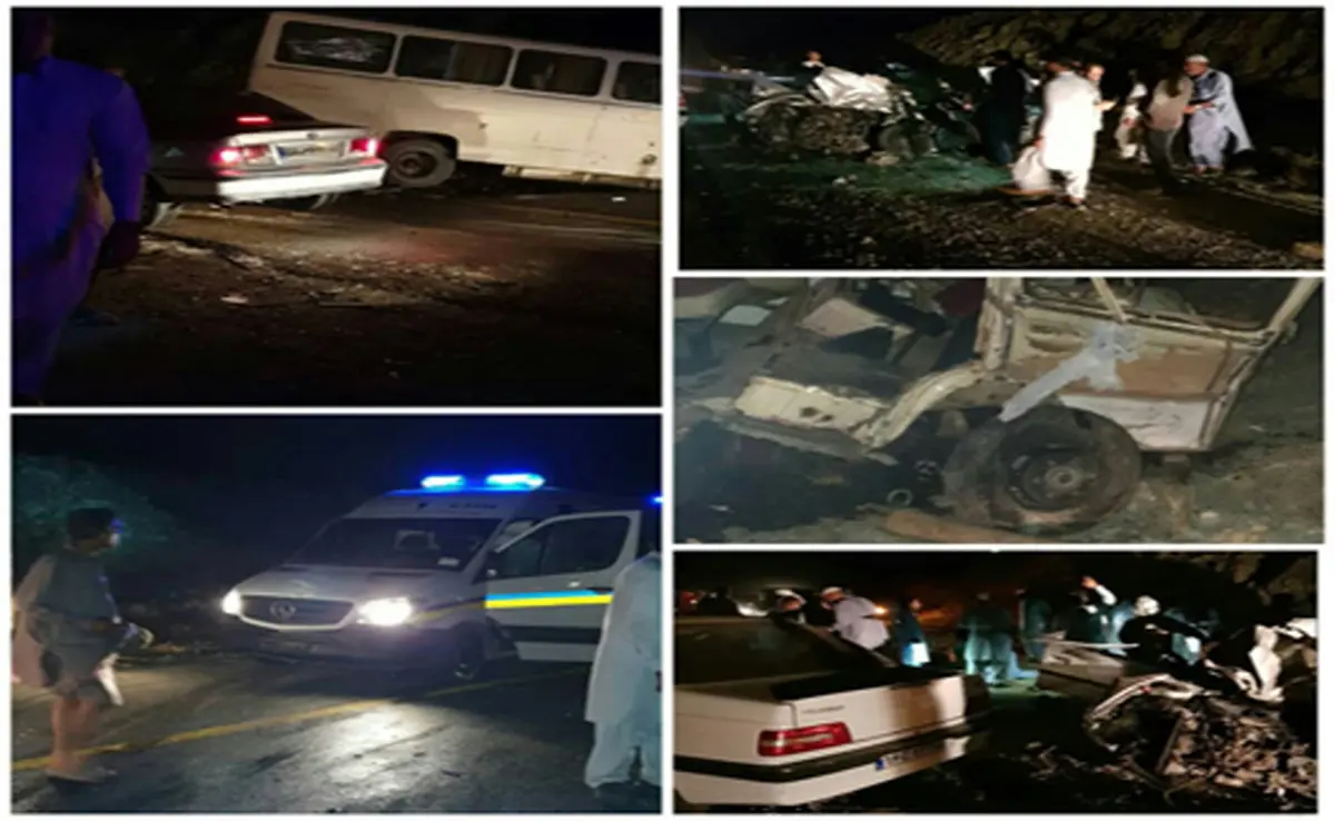 محمودرضا ناصح مدیر مرکز حوادث و فوریت های پزشکی ایرانشهر گفت: برخورد مینی بوس با دو خودروی پژو ۴۰۵ در محور نیکشهر به قصرقند که باعث کشته شدن ۶ نفر و مجروحیت ۱۲ نفر شده است.