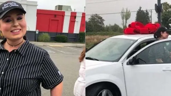 حوادث رکنا:رستوران «کی اف سی » ایالت اورگان در آمریکا به مادر مجردی که یک سال مسیر کار تا خانه خود را پیاده طی می کرد یک خودرو هدیه داد.