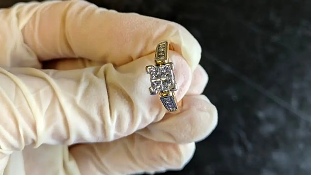 از قرار معلوم، سگ بازیگوش زمانی که صاحبش مشغول به کار بوده حلقه نامزدی او و یک سکه را بلعیده است.