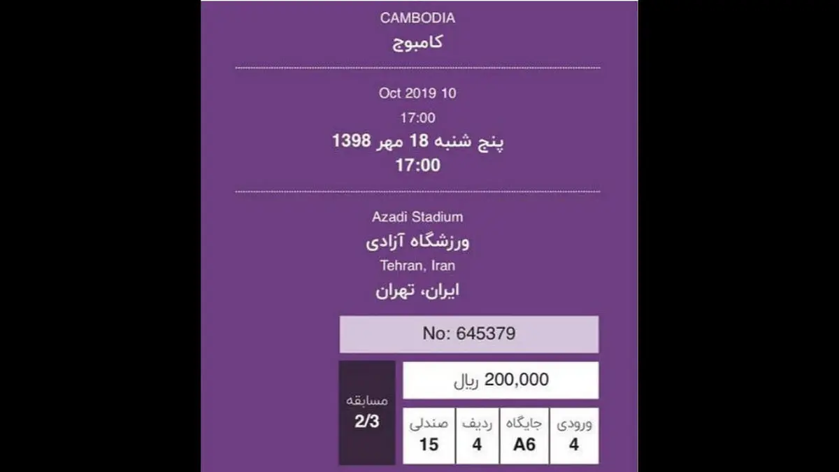 خرید بلیت بازی ایران کامبوج برای زنان آزاد است. بلیت فروشی از روز ۱۷ مهر ساعت ۱۲ آغاز خواهد شد.