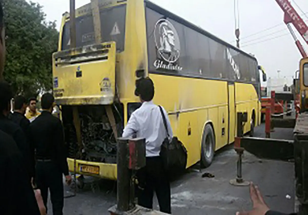 عکس آتش سوزی اتوبوس زائران اربعین در اهواز