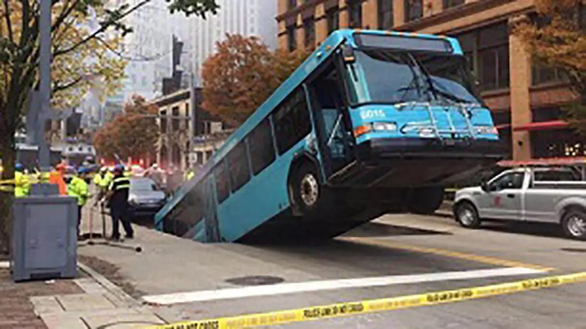 رکنا: یک اتوبوس در خیابانی در پنسیلوانیا به داخل زمین فرو رفت و موجب وحشت مسافرانش شد.