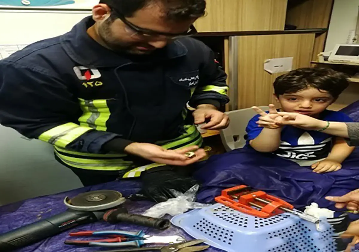 او افزود: پسربچه بازیگوش ۵ ساله حین بازیگوشی انگشت شصت در یک قطعه کوچک آهنی گیر کرد و والدین او قادر به خارج کردن انگشتش نبودند.