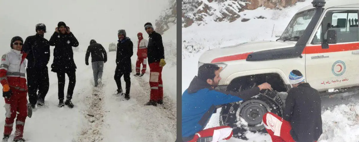 عملیات نجات برای رهایی 4 دانشجو از سرمای حاصب بارش برف در شیرین آباد+ تصاویر و جزییات