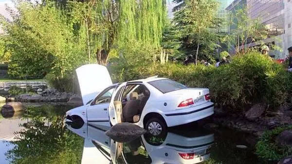 سقوط عجیب سمند به برکه وسط پارکی در تهران + عکس