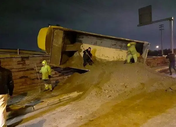 حوادث رکنا: برخورد یک کامیون با گاردریل در بزرگراه فتح برخورد کرد و واژگون شد.