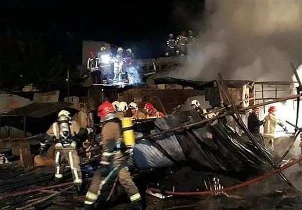 کارگاه تابلوفرش در بزرگراه سعیدی در آتش سوخت + عکس ها