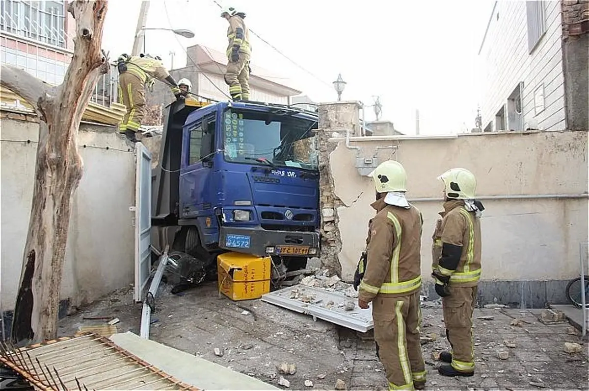 برخورد کامیون به دیوار خانه مسکونی در خیابان شریعتی