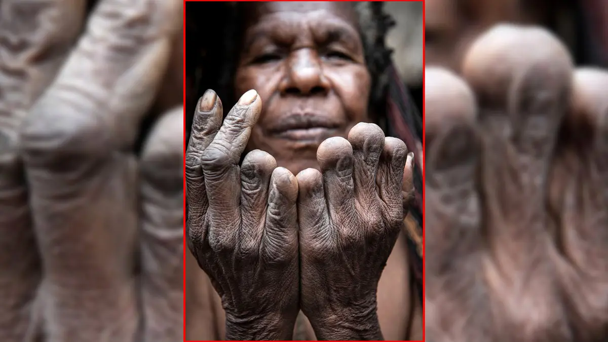 رسم عجیب و باورنکردنی دیگر اعضای این قبیله بریدن انگشتان دست زنان است. طبق رسم این قبیله انگشتان زنان با فوت یکی از اعضای خانواده و بستگان او باید بریده شود. تصویر دیگر زنی سالخورده را نشان میدهد که به نشانه مرگ شش نفر از بستگانش شش انگشت دست او بریده شده است. بنا به اعتقاد اعضای این قبیله بریدن دست زنان یک سمبل و نشاندهنده سوگوار بودن آنها است.برای ورود به کانال تلگرام ما کلیک کنید.