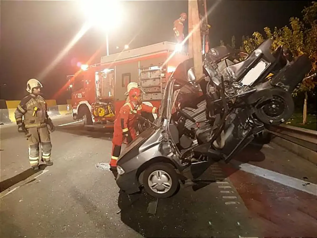 تصاویر وحشتناک از مچاله شدن 2 خودرو در بزرگراه بعثت