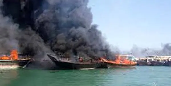 حوادث رکنا : 3 لنجصیادی در بندرحسینه واقع در هرمزگان دقایقی پیش طعمه آتش شد.