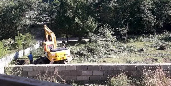 در فیلم و تصاویر نشان میدهد افرادی در حال قطع درختان این زمین که در نزدیکی رودخانه مشغول هستند.