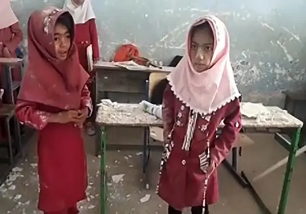 ریزش وحشتناک سقف مدرسه روی سر دختران در میناب + فیلم