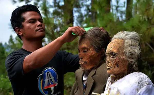 به گزارش رکنا ، در آیینی هولناک در یکی از قبایل جنوبی اندونزی مردگان از خاک بیرون کشیده شده و آرایش میشوند. اعضای قبیله توراجا در سولاوسی هر سه تا چهار سال یکبار اعضای خانواده و بستگان متوفی خود را از قبر بیرون میکشند و معتقدند با این کار به ثروت دست مییابند. اجساد پوسیده پس از بیرون کشیده شدن به یک چوب گره زده شده تا زیر آفتاب خشک شوند.