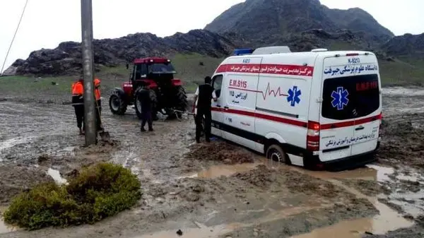 وی افزود: به دلیل وقوع سیلاب و جاری شدن گل و لای در مسیر این روستا موجب شد که آمبولانس ۱۱۵ در میان گل و لای مسیر گیر کند.