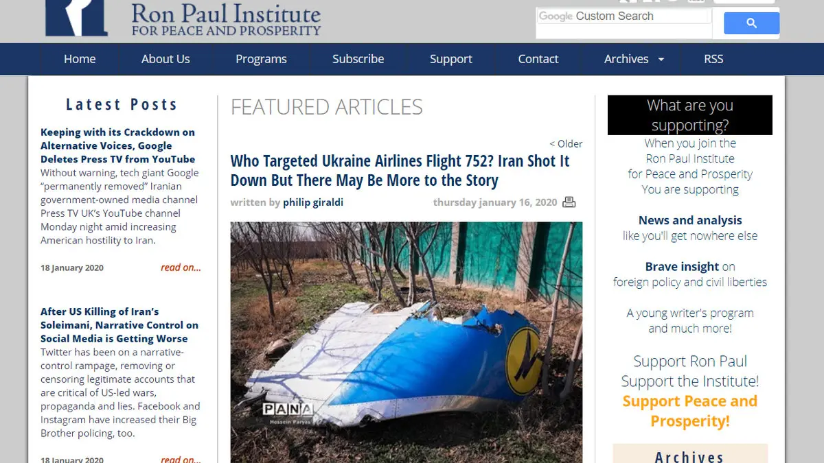 به گزارش گروه بین الملل رکنا، «فیلیپ جرالدی»، افسر سابق بخش مبارزه با تروریسم در سازمان اطلاعات مرکزی آمریکا (سیا) در یادداشتی که در یک سری از رسانه های امریکایی و کانادایی انتشار یافته است شلیک موشک سپاه به هواپیمای مسافربری اوکراین را برنامه ای سازمان یافته توسط امریکا و اسرائیل دانست و با دلایل کاملا نظامی و جاسوسی اعلام کرد هواپیمای ساخت امریکای بوئینگ 752 زمانی هدف قرار گرفته است که آلارم دشمن می داد .