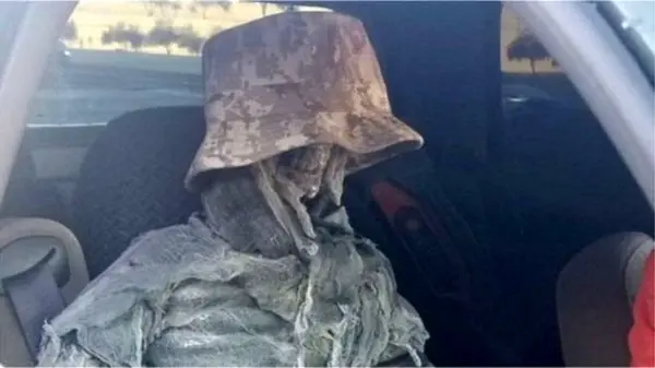 اداره امنیت عمومی ایالت آریزونا گفته است که "این فرد ۶۲ ساله، زمانی دستگیر شد که یک مامور پلیس متوجه شد این اسکلت که کلاهی بر سر داشت با طنابی به صندلی بسته شده است. "