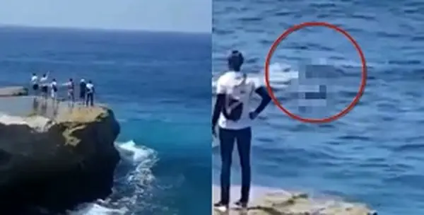 ویدیویی که توسط یک شاهد عینی تهیه شده تعدادی زیادی از افراد را در حالی که روی صخره ایستادند و نظاره گر جسد زن سقوط کرده به داخل آب هستند را نشان میدهد.