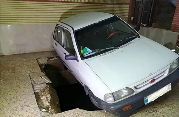 ساکنان ساختمان مسکونی ساعت ۳۰ دقیقه بعد از نیمه شب گذشته پس از شنیدن صدای غیر منتظره ای از داخل پارکینگ آن با عجله خود را به پایین رساندند و با صحنه فروکش کردن کف پارکینگ و سقوط یک دستگاه خودرو سواری مواجه شدند.