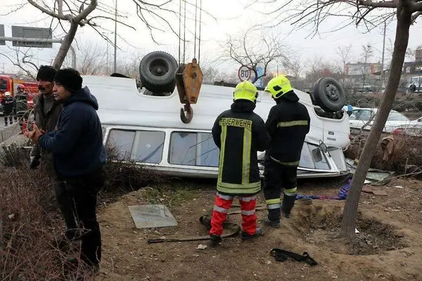 واژگونی خونین مینی بوس در مشهد با 10 مصدوم