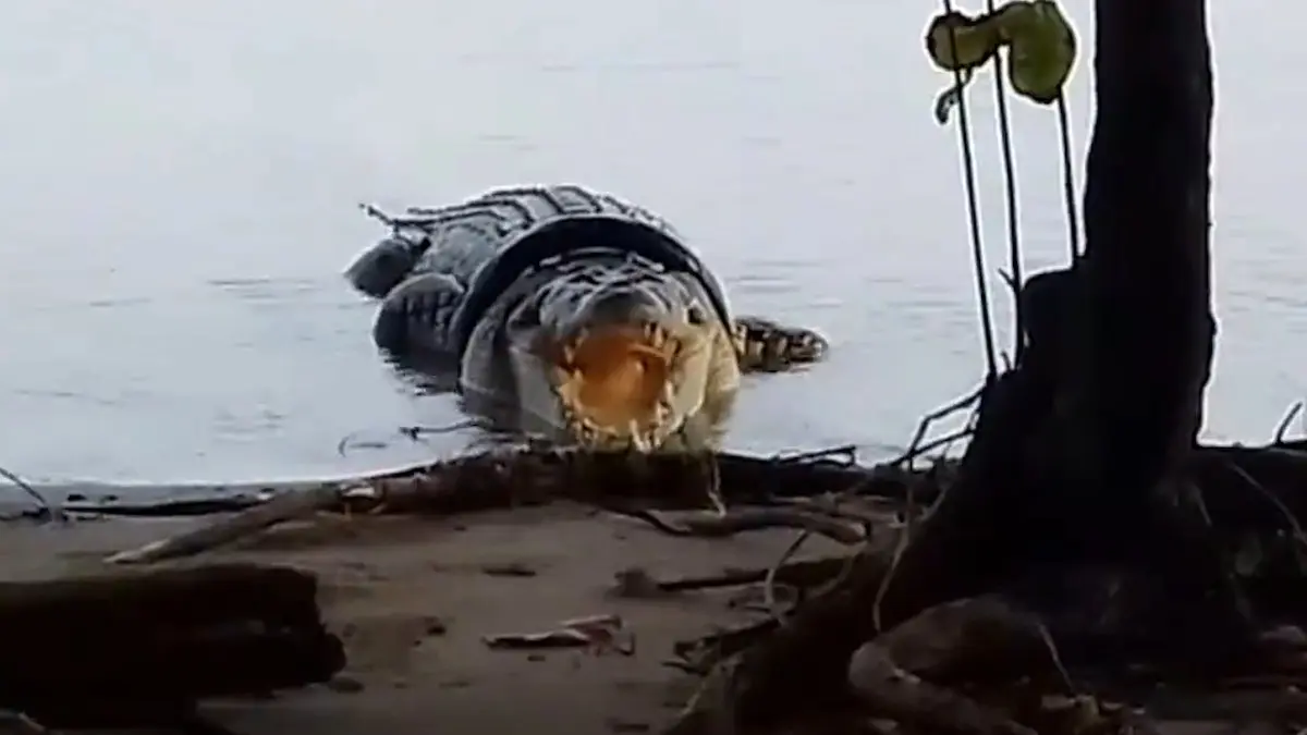 ویدیویی که به تازگی در رسانه لایولیک منتشر شده نشان می دهد که کروکدیل در حالی که یک تایر دور گردنش است به سواحل اندونزی آمده و در مقابل دوربین با تایر دور گردنش در کشمکش است.