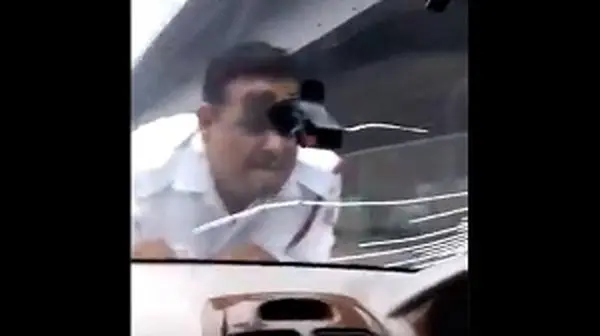 اقدام جنون آمیز راننده با مامور پلیس+ فیلم / هند