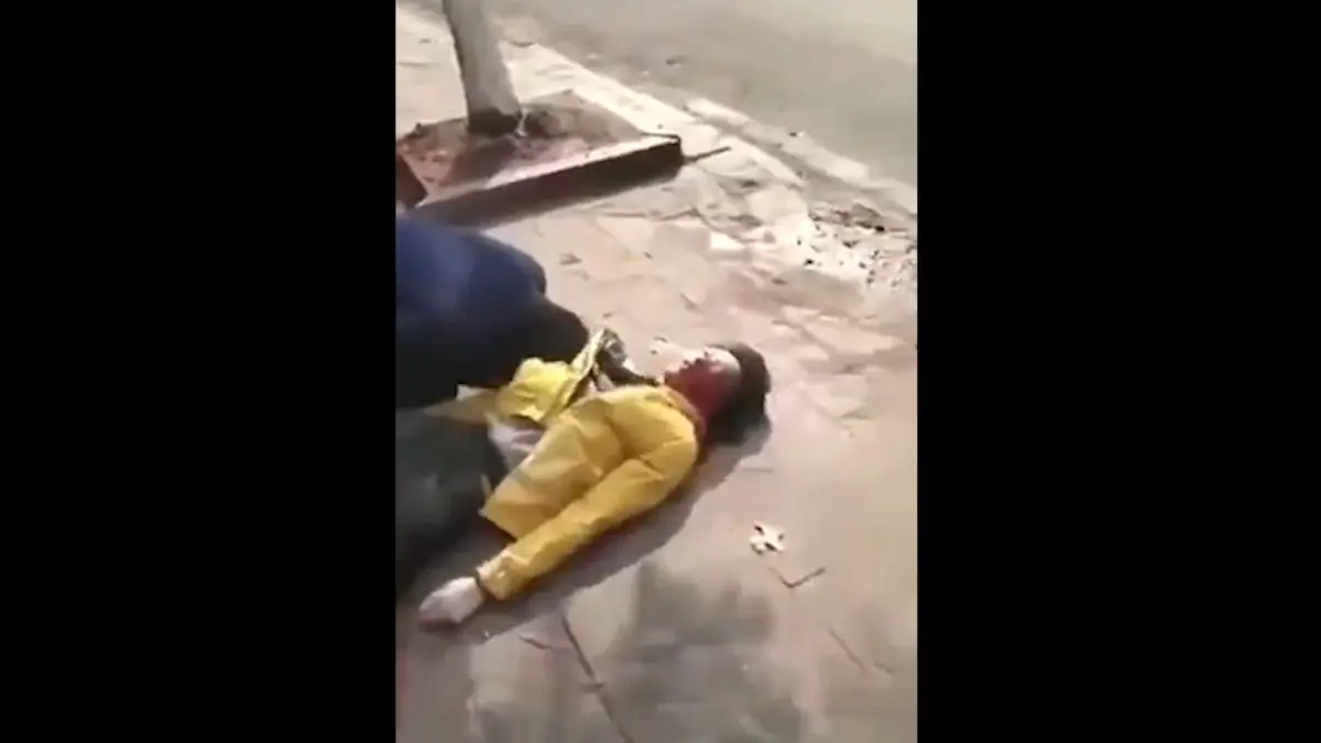 در این ویدیو مشاهده می شود که یک زن چینی که با گلوله به قتل رسیده در خیابان روی زمین افتاده و شاهدان عینی در حال فیلمبرداری از او هستند.