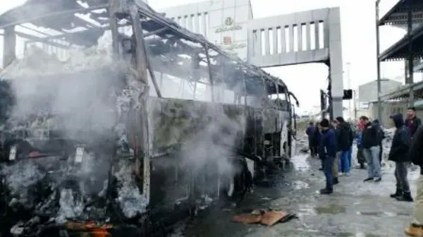 خاکستر شدن اتوبوس در مرز تمرچین / بدون مسافر و بدون آتش نشان ! + عکس