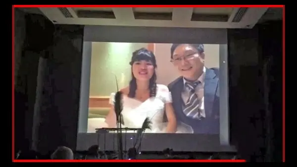 این زوج از خانواده و اقوام خود خواستند تا در یک سالن مخصوص نمایش تئاتر گرد هم بیایند تا آنها را در برپایی جشن بهترین روز زندگی شان همراهی کنند. پس از حضور مهمانان در محل آنها از طریق اینترنت و به صورت زنده مراسم ازدواج خود را بر روی یک نمایشگر در سالن پخش کردند و به این ترتیب بهترین روز زندگی خود را جشن گرفتند. در یکی از تصاویری که منتشر شده است مهمانان زیادی را که در سالن برگزاری جشن حضور دارند نشان میدهد. در تصویر دیگر عروس و داماد جوان در هنگام پخش زنده از طریق اینترنت دیده میشوند.