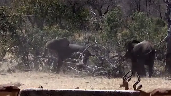 در ویدیو منتشر شده نشان می دهد که یک گله آهو در کنار یک آبگیر در حال نوشیدن آب هستند که ناگهان آهو داخل آب افتاده و شروع به دست و پا زدن می کند تا از خفگی نجات پیدا کند اما در این هنگام فیل غول پیکر به کمک آهو رفته و با هل دادن جان او را از مرگ نجات می دهد.