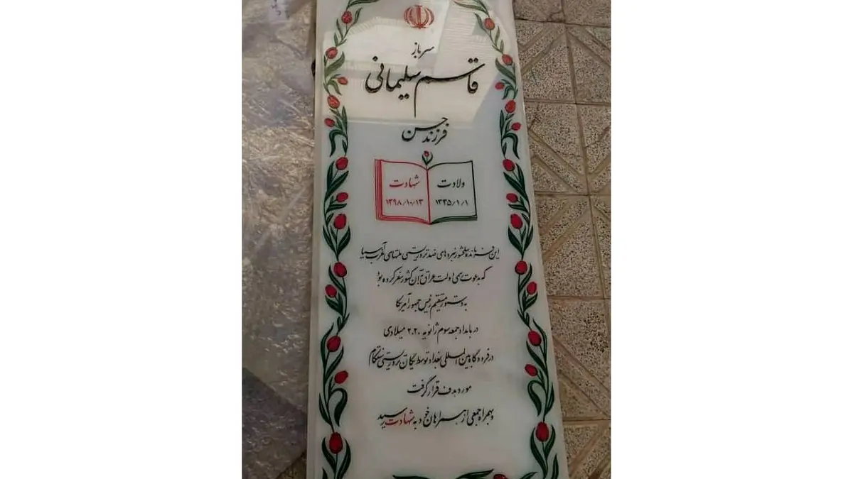 حوادث رکنا: سنگ مزار جدید شهید سپهبد قاسم سلیمانی در کرمان را می بینید.