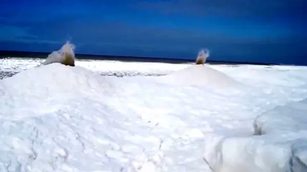 به گزارش رکنا ، یک کارشناس هواشناسی ویدئویی از فوران آتشفشان های یخی نزدیک دریاچه میشیگان در آمریکا ثبت کرده است. «ارنی اوستونو» هنگام پیاده روی در «اووال بیچ » واقع در ایالت میشیگان با یک توده مخروطی شکل از یخ روبرو شد.