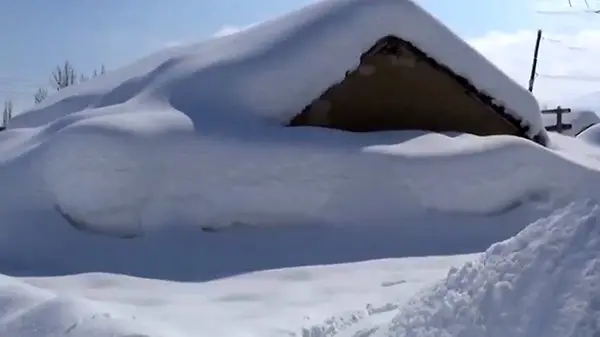 زیر برف ماندن کامل یک روستا در ترکیه + فیلم
