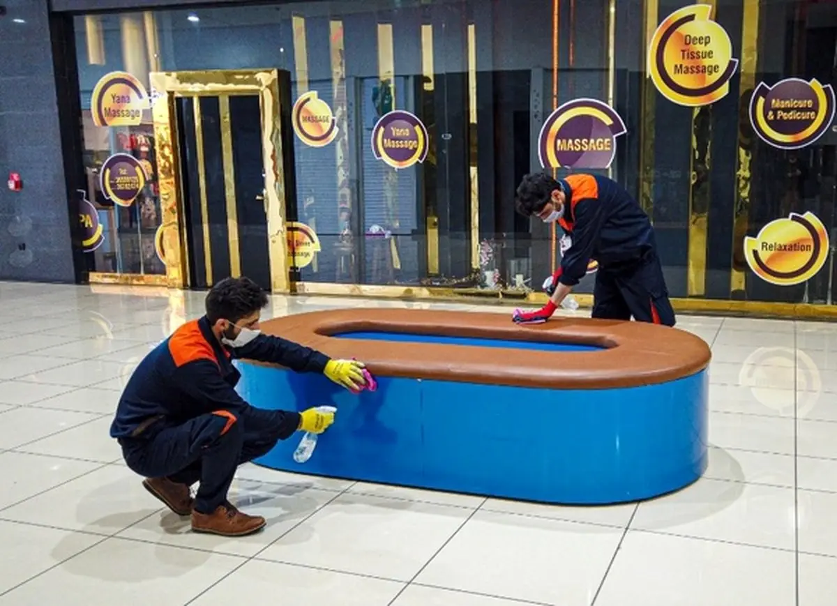 وی با بیان این موضوع که طبق گفته وزارت بهداشت ویروس کرونا از طریق تماس مستقیم با قطرههای تنفسی فرد آلوده (ازطریق سرفه و عطسه) و تماس با سطوح آلوده به ویروس منتقل میشود افزود: پله های برقی و هندریل های آن، آسانسورها، سرویس های بهداشتی و فودکورت های مجموعه ( به خصوص میز و صندلی های موجود در آنها ) که همگی از مکان های پر تردد مجموعه هستند و مشتریان تماس بیشتری با آنها دارند مرتب در حال ضد عفونی شدن هستند، چرا که این ویروس می تواند ساعتها روی سطوح زنده بماند، ولی یک ضدعفونی ساده میتواند آن را از بین ببرد.
