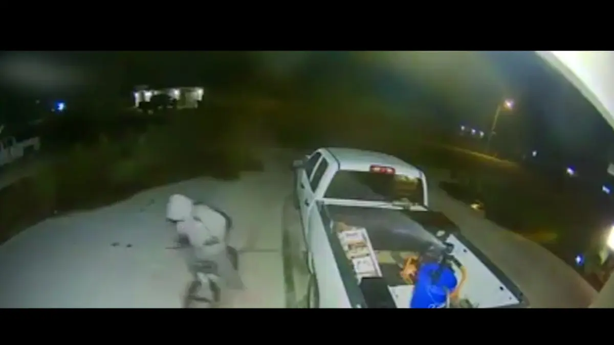 در این ویدئو که توسط دوربین مدار بسته تهیه شده است یک سارق که سوار بر دوچرخه شده در حال نزدیک شدن به خانه این زوج دیده میشود. همچنین این ویدئو یک وسیله نقلیه متعلق به این زوج نیز را که در مقابل درب خانه آنها پارک شده نشان میدهد. در این ویدئو مشاهده میشود پس از آنکه سارق به خودرو نزدیک میشود برق مقابل درب خانه روشن شده و آب پاشی که در داخل ماشین است شروع به پاشیدن آب به سمت سارق میکند. سارق که انتظار چنین اتفاقی را نداشت بلافاصله دور زده و با دوچرخه فرار میکند.