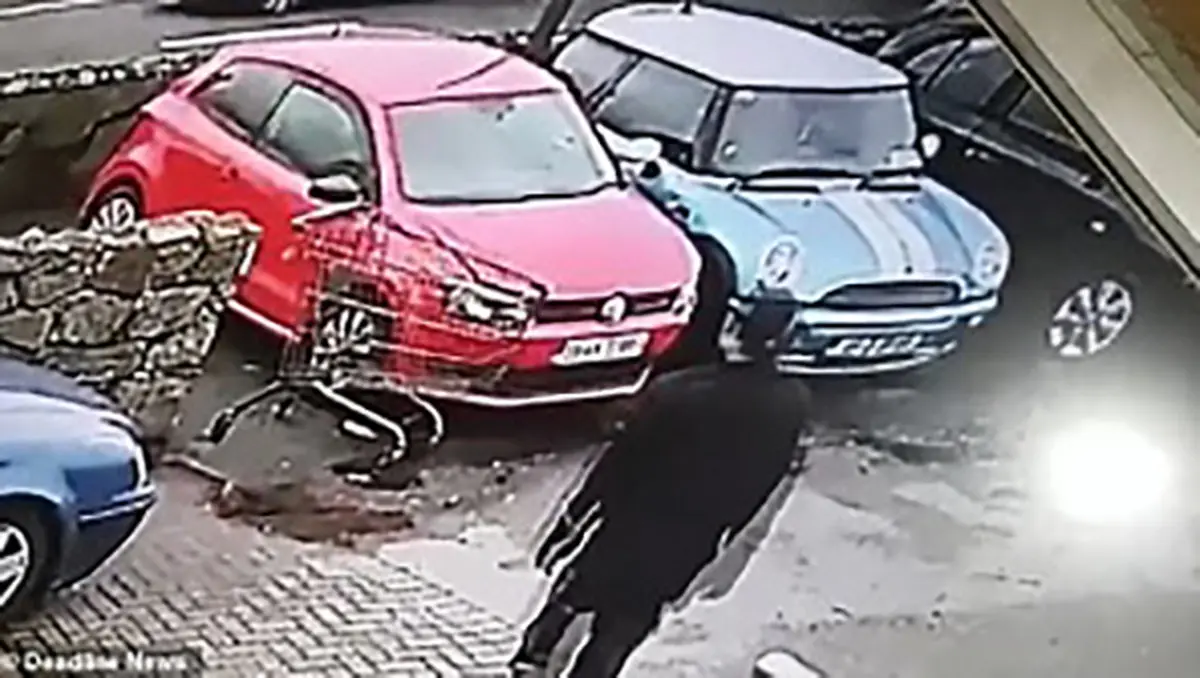 در ویدیو منتشر شده نشان می دهد که یک چرخی دستی از داخل خیابان به محوطه پارکینگ تعمیرگاه سقوط کرده و به خودروی قرمزرنگی که در آنجا پارک بود آسیب میزند و لحظاتی بعد مکانیک که متوجه این حادثه شده به سمت خودرو حرکت میکند تا از وارد نشدن خسارت به خودروی پارک شده مطمئن شود اما در حالی که او مشغول چک کردن بدنه خودرو است متوجه میشود که برخورد چرخ دستی به ماشین موجب آسیب به رنگ خودرو شده که در این لحظه مکانیک که بسیار خشمگین است ضربه ای به چرخ دستی وارد می کند که موجب بلند شدن قسمت فوقانی چرخ دستی و برخورد آن به سرش می شود.