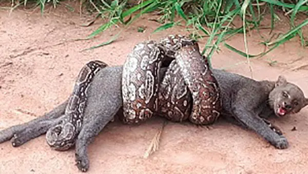 در ویدیو منتشر شده نشان می دهد که یک مار بوآ با حلقه زدن دور بدن گربه سعی بر خفه کردن و بلعیدن این حیوان را دارد که دو مرد روستایی وارد عمل شده و توانستند جان گربه را از مرگ از چنگال مار بوآ نجات دهند.