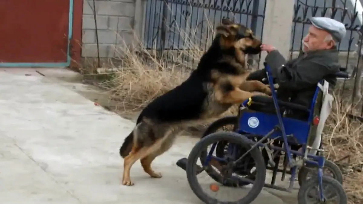 در ویدیو منتشر شده نشان می دهد که سگ مهربان با هل دادن ویلچر صاحب 70 ساله اش به او کمک می کند تا در خیابان حرکت کند.